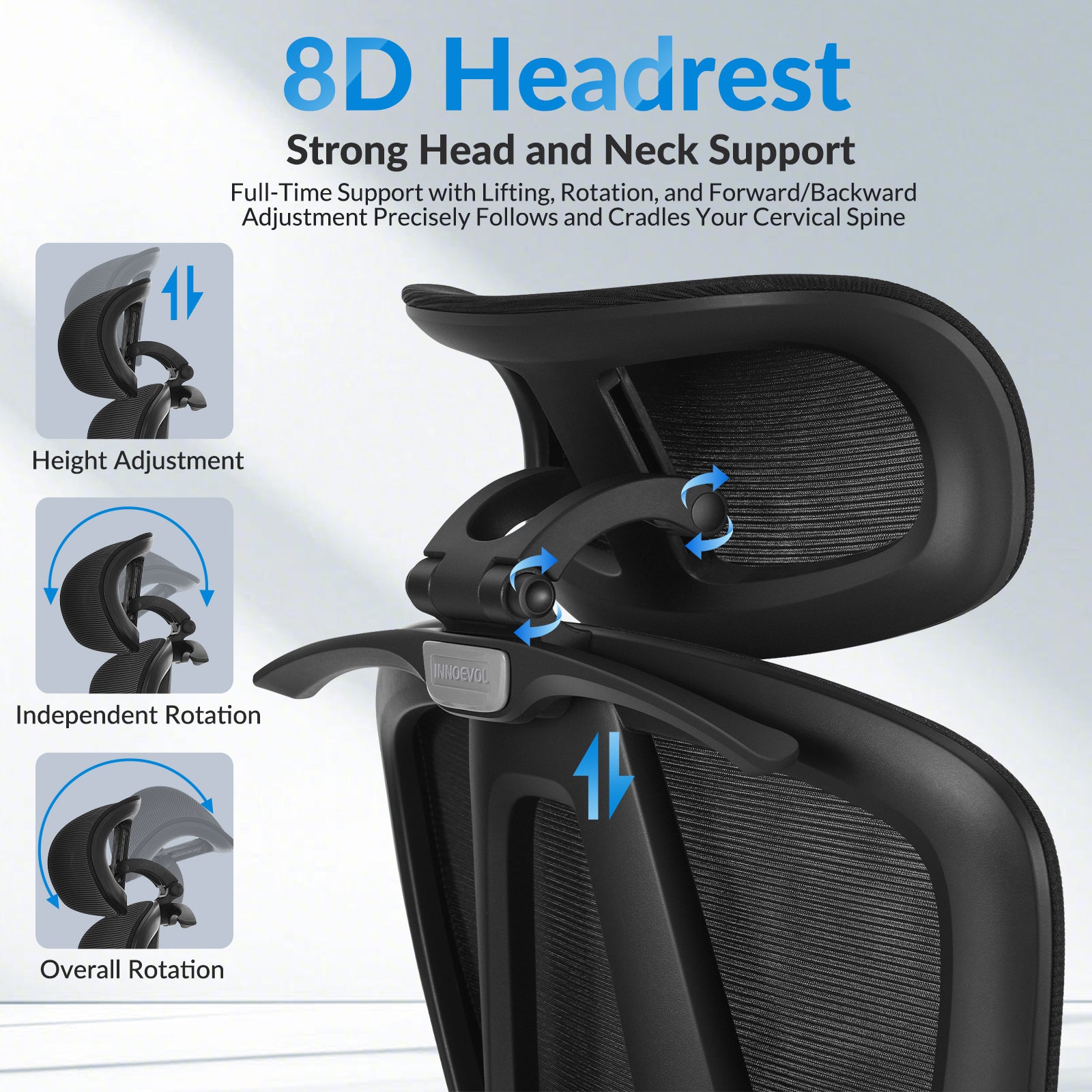 INNOEVOL Ergonomic Chair with 3D Armrests & Lumbar Support – Adjustable Headrest & Footrest EC60