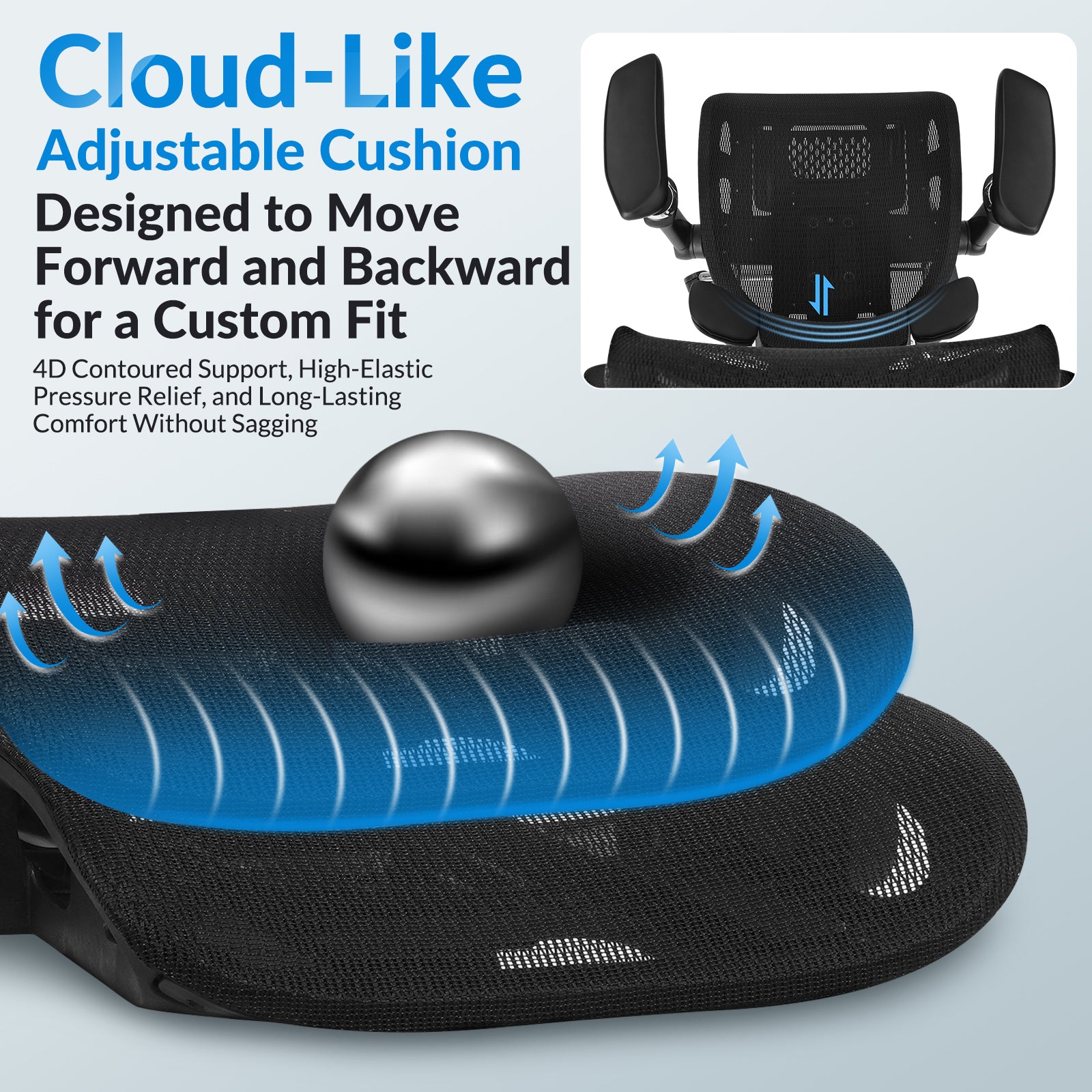 The backrest features a floating lumbar system and zoned spinal segments that intuitively adjust to your movements. It delivers tailored support across your lumbar, thoracic, and upper back regions—enhancing posture and relieving daily pressure.